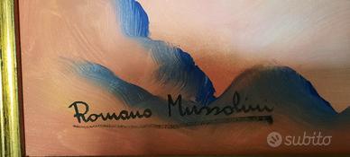 Vendo quadro Dipinto ad olio di Romano Mussolini su tela originale. Garanzia e quotazione a cura della galleria Studio d’Arte Roma. Dimensioni tela: 50 x 70 cm Inclusa cornice (senza il vetro) In ottimo stato Prezzo 950 Euro Ritiro su Taranto o spedizione carico destinatario 15€ Tel 347 5260078