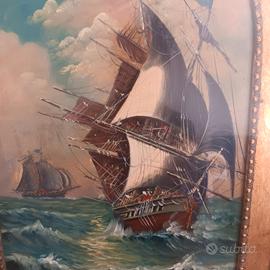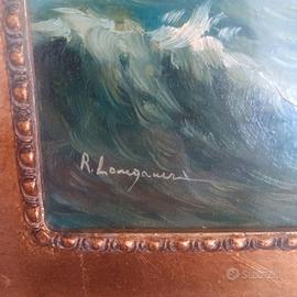 Opera originale di Renato Longanesi, realizzata attorno agli anni ’50/’60, raffigurante un veliero in primo piano e un secondo sullo sfondo.