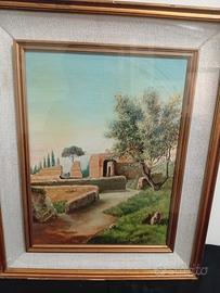dipinto scorcio di villa Adriana filacchioni 1983