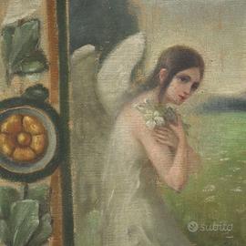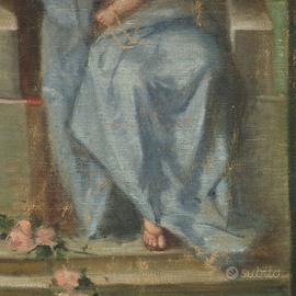 Dipinto su tela. A differenza della maggior parte degli stendardi coevi, questo dipinto a mano e non stampato su tela. La scena divisa in tre parti, racchiuse entro una cornice dipinta a motivi floreali e separate dal disegno di colonnine. Al centro sono raffigurati la Madonna con Ges in trono, ai lati due angeli con sembianze di fanciulle. Il dipinto poi incorniciato da una passamaneria. Codice: ARARNO0264520 Condizione prodotto: Prodotto in buone condizioni, presenta piccoli segni di usura. Cerchiamo di presentare lo stato reale nel modo pi completo possibile con le foto. Qualora alcuni particolari non risultassero chiari dalle foto, fa fede quanto riportato nella descrizione. Misure: Largh.:138.00 cm, Alt.:101.00 cm, Prof.:1.00 cm QUESTO ARTICOLO E' DISPONIBILE PRESSO IL NEGOZIO DI CAMBIAGO Venditore: Barbara (dal Luned al Venerd : dalle 9:00 alle 19:00, Sabato: dalle 10:00 alle 19:00) Per maggiori informazioni contattateci su Whatsapp. Disponibile ad inviare video o foto integrative su Whatsapp Di Mano in Mano, Negozio dell'usato di Cambiago, via Castellazzo 8. Oltre 4000mq espositivi, tra usato, vintage, modernariato, antiquariato, arte e libri. Esplora il nostro portale mercatiniusato.org per scoprire centinaia di arredi usati.