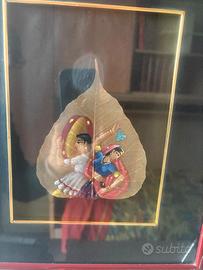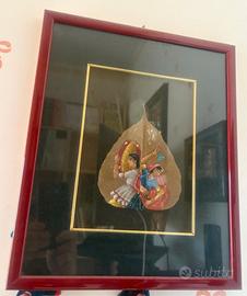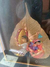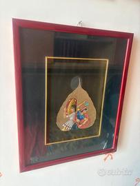 Dipinto su vera foglia incorniciato con passpartout. Dimensioni totali cm. 29x35