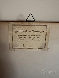 Vendo quadro raffigurante veliero interamente dipinta a mano su lamina d’oro zecchino. Il quadro presenta la certificazione di garanzia sul retro.
