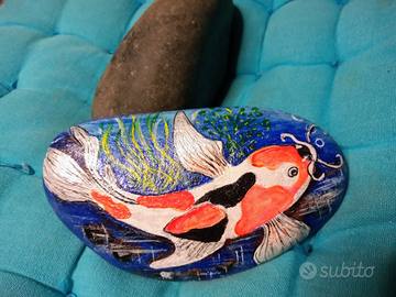 Sasso dipinto a mano con colori acrilici e vernice protettiva finale pezzo unico.