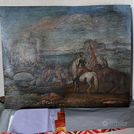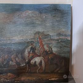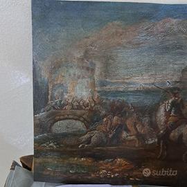 dipinto su rame presumibilmente fine del 700 riporta scena di battaglia cm 20 x25