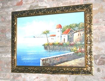 Bellissimo dipinto su tela raffigurante un paesaggio marino. Completo di cornic4 molto bello Misura 85x65 Nuovo Prezzo eccezionale Ritiro a carico dell'acquirente Piazza Settevalli PG