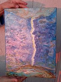 Dipinto che rappresenta il cielo e la terra "sottosopra" spaccati/legati da un fascio di speranza. Evocativo e d'ispirazione.