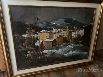 Dipinto olio su tela. Inverno a Pieve di Teco di Francesco Mancini artista nato a Roma nel ‘900. Vedi foto e biografia sul retro . Misura 70x50 .