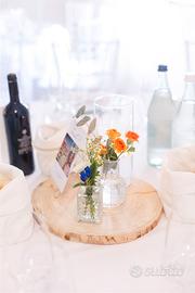 Vendo dischi in legno, rustici, non trattati, fatti in casa. Utilizzati come centrotavola per il matrimonio. Vendo 3 €/uno. Possibilità di spedizione, da concordare.