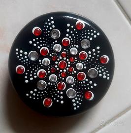 Diametro 7 cm. Con strass. Dipinto a mano, in gesso alabastrino