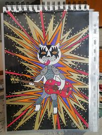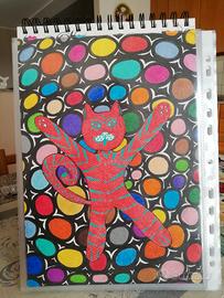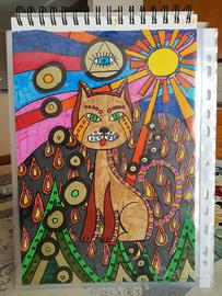 Gatti astratti su carta técnica mista 21x30 Pennarelli e matite colorate
