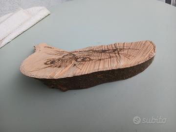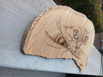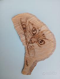 Disegno del gatto sul legno con il pirografo π«