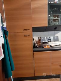 Vendo a fine febbraio cucina Ola Snaidero lineare di 5 metri + altro pezzo di 1,20 metri. Completa di frigo, forno, lavastoviglie, fuochi, lavello con rubinetto, tavolo penisola diametro 150 cm e 4 sedie. Visibile. Prezzo trattabile. Composizione 5 m: colonna da 60, base 45, base con cassettoni 60, base 45, base 90, base cassetti 45, base lavastoviglie 60, base lavello 2 vasche 90, pensile 45, vetrinetta 60, cappa 90, vetrinetta 60, scolapiatti 90, mensole. Composizione 1,20: colonna frigo, colonna forno, 2 mensole, tavolo penisola da 150 cm, 4 sedie e 2 sgabelli.