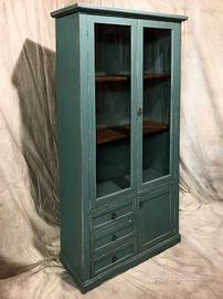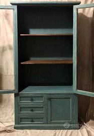 Dispensa a vetrina color blu ocean - petrolio sfumato e antichizzato.