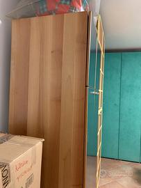 Disprnsa armadio da cucina a due ante colore verde bottiglia e noce naturale i fianchi. Provvista di numerosi scomparti interni, illuminazione automatica all’apertura.