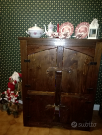 Vendo dispensa in legno massello fatta artigianalmente ,larga cm.107e alta cm.136,composta da 4ante molto capienti,con dettagli particolari .La cedo per problemi di spazio,ma veramente a malincuore.
