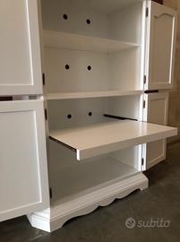 Vendo dispensa credenza 4 porte laccata bianca. 3 ripiani interni di cui uno con carrello estraibile. Dimensioni L 103 P 56 H 155. Ultimo pezzo.