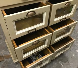 4 cassetti con frontale in legno 6 cassetti con frontale in vetro