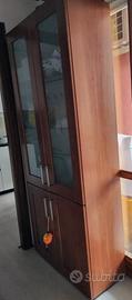 dispensa (Brand: Carlo Cavalli 1920) con ante integralmente di ciliegio e vetrina superiore con luce e ripiani in cristallo