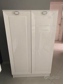 Dispensa bianco lucido con maniglie e ripiani interni capiente e pratica