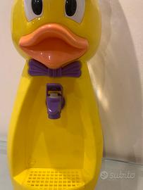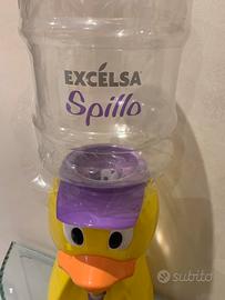 Dispenser d’acqua per bambini della marca Excelsa, modello “Spillo”, molto utile per le feste di compleanno dei nostri piccoli. Mai utilizzato •Forma: papero/germano giallo (design per bambini) •Serbatoio: bottiglia di plastica trasparente sopra •Rubinetto: leva viola frontale •Uso: per acqua o bevande fredde, da tavolo •Funzionamento: a gravità (non elettrico)