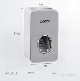 Dispenser erogatore automatico dentifricio a parete. Installazione semplice tramite adesivo, nessuna perforazione necessaria. Nuovo con confezione.