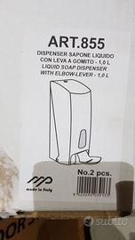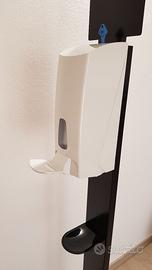 colonna in metallo smaltato alta 144cm, completa di porta cartello segnaletico, raccogli gocce, piantana stabile larga 27,5cm e profonda 39cm. Fornito con dispenser da 1 litro comando erogazione a gomito, utilizzabile per igienizzante o saponi, ideale all'ingresso di attività o uscita da servizi igienici. Nuovo mai usato, solo esposizione, fornito di chiave ed istruzioni. disponibili altri 2 nuovi sigillati. prezzo al singolo kit. Per le dimensioni della piantana è preferibile il ritiro di persona. in caso sarà da valutare costi di spedizione a carico dell'acquirente.