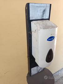 Vendo dispenser per gel igienizzante o sapone, montato su struttura in metallo con base stabile. Acquistato durante il periodo Covid, è stato usato raramente. Perfettamente funzionante, presenta segni estetici (polvere, piccole usure) ma nessun difetto tecnico.
