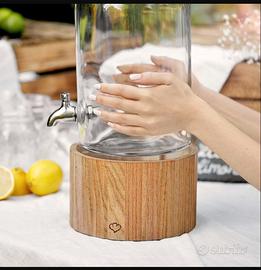 SPRINGLANE Greta Dispenser per bevande in vetro con rubinetto in acciaio inossidabile e supporto in rovere, distributore di limonata, barattolo di vetro dal design vintage (5 L)