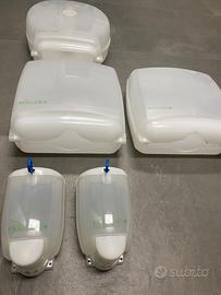 Porta carta mani 2 pezzi, porta carta igienica 1 pezzo, e dispenser sapone 2 pezzi... non vendo separatamente, non trattabile.