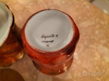 Vendo Set accessori da bagno in ceramica effetto marmorizzato interamente dipinti a mano. Il set è composto da un dosatore porta sapone liquido, un contenitore porta spazzolini, un piattino porta sapone solido, un bicchiere... Ottime condizioni, come nuovo...