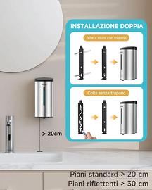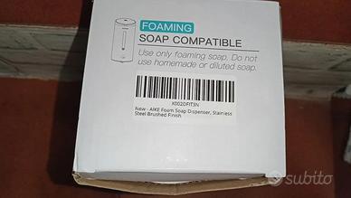 AIKE FoamCore Dispenser Sapone Schiuma Automatico, a Parete per Uso Commerciale, 750ML Acciaio Inossidabile per Sapone Mani Schiumogeno (Acciaio inox spazzolato) Dimensioni del prodotto 22,1L x 10,9l x 10,2H cm Pacco Batteria : 4xAA NOTA: Utilizzare esclusivamente ricariche di sapone schiumogeno pre-miscelato. Non diluire e non usare sapone liquido normale. Richiede 4 batterie AA (non incluse) INSTALLAZIONE FLESSIBILE: Include viti e adesivo senza residui per il montaggio. L'adesivo senza residui può essere utilizzato solo su pareti pulite, asciutte e lisce e richiede almeno 48 ore per la fissazione ALTEZZA DI INSTALLAZIONE: Rimuovere tutti gli ostacoli sotto il distributore. Per piani di lavoro ordinari >20 cm / Per piani di lavoro riflettenti >30 cm SCHIUMA OTTIMIZZATA: L'ugello lavabile con schiumatore produce una schiuma ricca e consistente. Pulizia senza attrezzi in 10 secondi: svita l'ugello usando la chiave. La pulizia regolare assicura una migliore esperienza di schiuma MANUTENZIONE FACILE: Capacità da 750 ml. Finestra di visualizzazione per controllare il sapone. Alloggiamento di facile pulizia. Richiede 4 batterie AA (non incluse), sostituibili in 10 secondi CONTROLLO SCHIUMA INTELLIGENTE: Regolazione a 5 livelli. Ottimizza il volume della schiuma per qualsiasi ambiente commerciale! (Preimpostato: Livello 2)