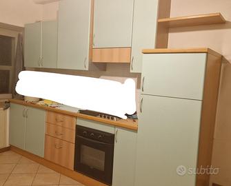 Cucina componibile LUBE color verde, 3 mt lineari completa di elettrodomestici ARISTON, opiano cottura 4 fuochi, ocappa oforno ventilato, ofrigorifero con freezer ad incasso. In ottime condizioni usata pochissimo installata in una taverna. La cucina è già smontata.