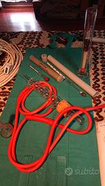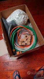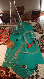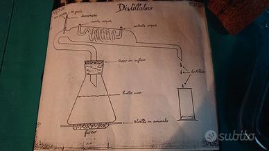 Distillatore in vetro, utilizzabile sia per la trasformazione in grappa di frutta e vino, che per l estrazione di oli essenziali; capacità 10 l. l'ampolla principale + 2 ampolle aggiuntive da 12 l. Il tutto è organizzato per l uso famigliare, con tubi e tappi e connessioni x rubinetto di un qualsiasi lavandino di casa. Il pezzo intermedio x estrazione degli oe non è mai stato usato. Disponibili tutti gli accessori necessari all ottenimento di un prodotto casalingo. Data la fragilità dei pezzi non è prevista la spedizione, ma solo la consegna sul posto dove sarà possibile ottenere ogni delucidazione necessaria per l uso corretto.