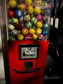 Questo è un classico distributore automatico di palline rimbalzanti (spesso chiamate bouncy balls), comunemente trovato in aree di gioco, bar o centri commerciali marca regina.