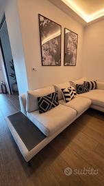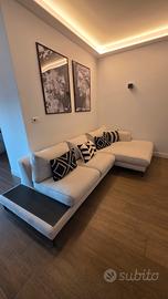 Vendo divano Ditre Italia modello Artis con chaise longue, di alta qualità e con cuciture sartoriali. Divano completamente sfoderabile, molto comodo e di design elegante. Colore ecru (tessuto Egitto 004) con piano in pelle color antracite. Dimensioni: Lunghezza totale: 305 cm (moduli 180 + 125) Altezza schienale: 62 cm (circa 80 cm con cuscino) Profondità seduta: 100 cm Profondità chaise longue: 170 cm Il divano è in condizioni ottime, senza danni.