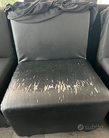 Vendo 18 divanetti monoposto neri in ecopelle attualmente rivestiti con copripoltrona. Presentano delle imprefezioni ma possono essere rivestiti o coperti con copripoltrona come ho fatto io.