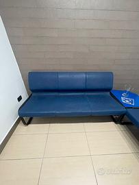 Cedo Set divano colore blu composto da : N. 2 divanetti da tre sedute N.2 divanetti da due sedute N.1 tavolino angolare tutto visionabile da vicino.