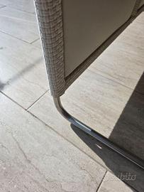 Rivestimento materassino e cuscini di appoggio: sfoderabile e disponibile nei tessuti outdoor indicati qui sotto.