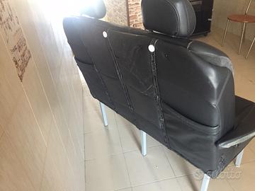 Vendo questo particolare divano biposto costruito sulla base di un divanetto posteriore estratto da una Volvo C70 coupe. Il divano è in pelle nera ed è stato realizzato costruendo una struttura di base di legno su cui sono stati vincolati i due pezzi del divano.