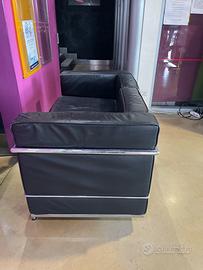 In vendita divanetto 2 posti in pelle nera, struttura esterna in tubolare di acciaio cromato, design moderno e iconico in stile Le Corbusier.