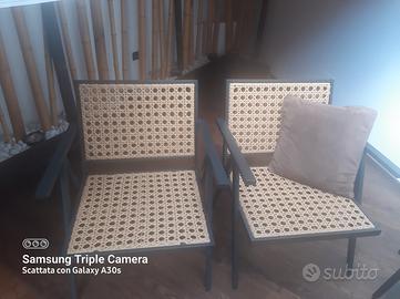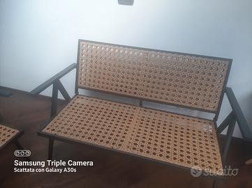divanetto +2poltrone in rattan sintetico e ferro nero x esterno/interno.in ottime condizioni .prezzo leggermente trattabile