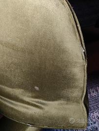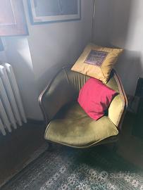 regalo divanetto tre posti in velluto verde insieme a una poltroncina stesso stile e stesso colore.
