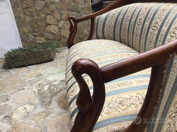 Divanetto antico anni 50’ con tappezzeria nuova . Larg. 115cm , prof. 60 cm , altezza 80 cm.