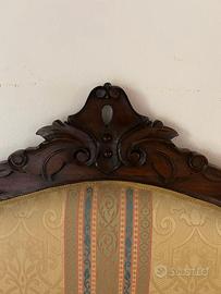 divanetto antico restaurato con parti in legno in ottime condizioni, tessuto macchiato
