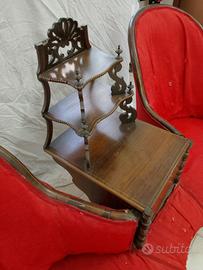 Antico divanetto in legno a 2 posti, con mobiletto a scomparsa intarsiato