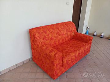 Divano due posti in buone condizioni nessuna macchia, unico difetto è uno strappo sul bracciolo sx. Compreso di copridivano grigio (sempre usato). Misure: profondità 76cm, altezza 85cm, larghezza 140cm.