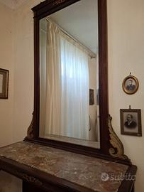 Divanetto e sedie abbinate, tavolino in marmo e specchiera con inserti dorati, parti dello stesso set. Vendibili anche singolarmente