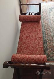 Divanetto o panca da fondo letto. Struttura in legno e tappezzeria in tessuto
