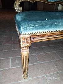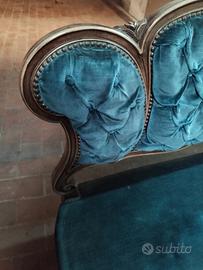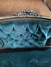 Vendo divanetto antico,colore verde petrolio,in ottimo stato di conservazione. Il mobile è in legno intarsiato. Pezzo pregiato. Consegna solo a mano per via degli ingombri.