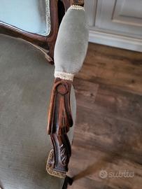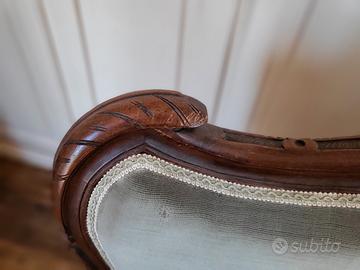 Divanetto del 1800 in noce e seduta imbottita. Seduta, schienale e braccioli in velluto color verde salvia. Per informazioni contattare in pvt